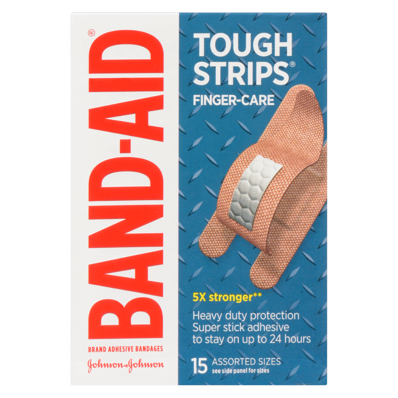 Tough strips are breathable bandages with a super-stick adhesive to stay on longer. Heavy-duty fabric delivers durable protection for hardworking hands, even at the finger bandage size. Tough strips provide heavy-duty protection.