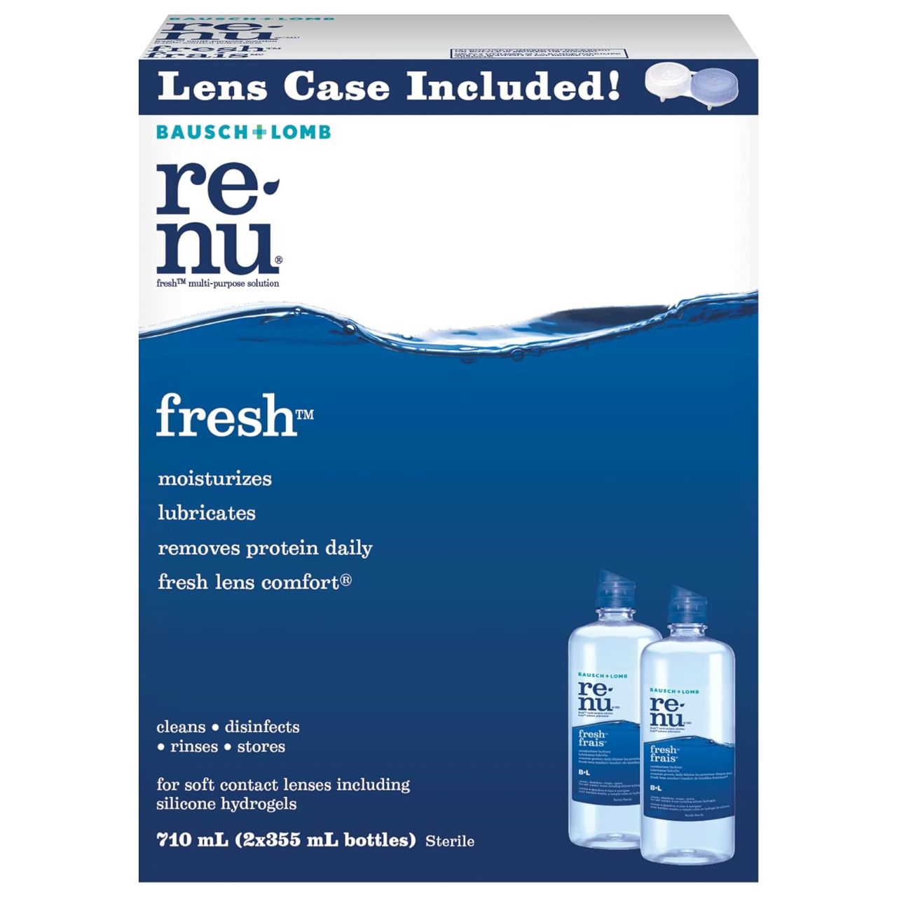 Bausch + Lomb Re-Nu Fresh Multi-Purpose Contact Solution (710 mL) is designed to mimic the natural feel of fresh tears, providing all-day comfort for soft contact lens wearers. This solution cleans, disinfects, and removes protein deposits daily, helping to fight germs and refresh your lenses. With no need for a separate enzymatic or daily cleaner for many users, Re-Nu Fresh offers convenient, effective lens care in one step.