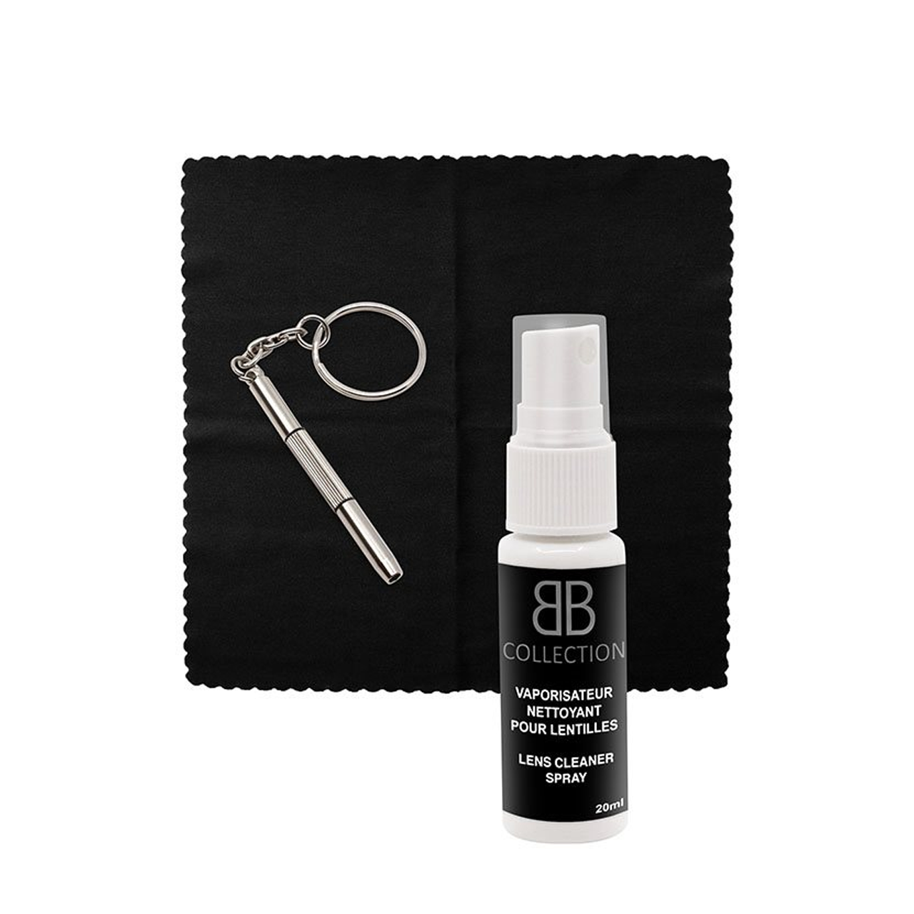 BB Collection Eyewear Cleaning Kit, designed to keep your eyeglasses, sunglasses, and screens impeccably clean. This kit is your go-to accessory for maintaining clarity and cleanliness.