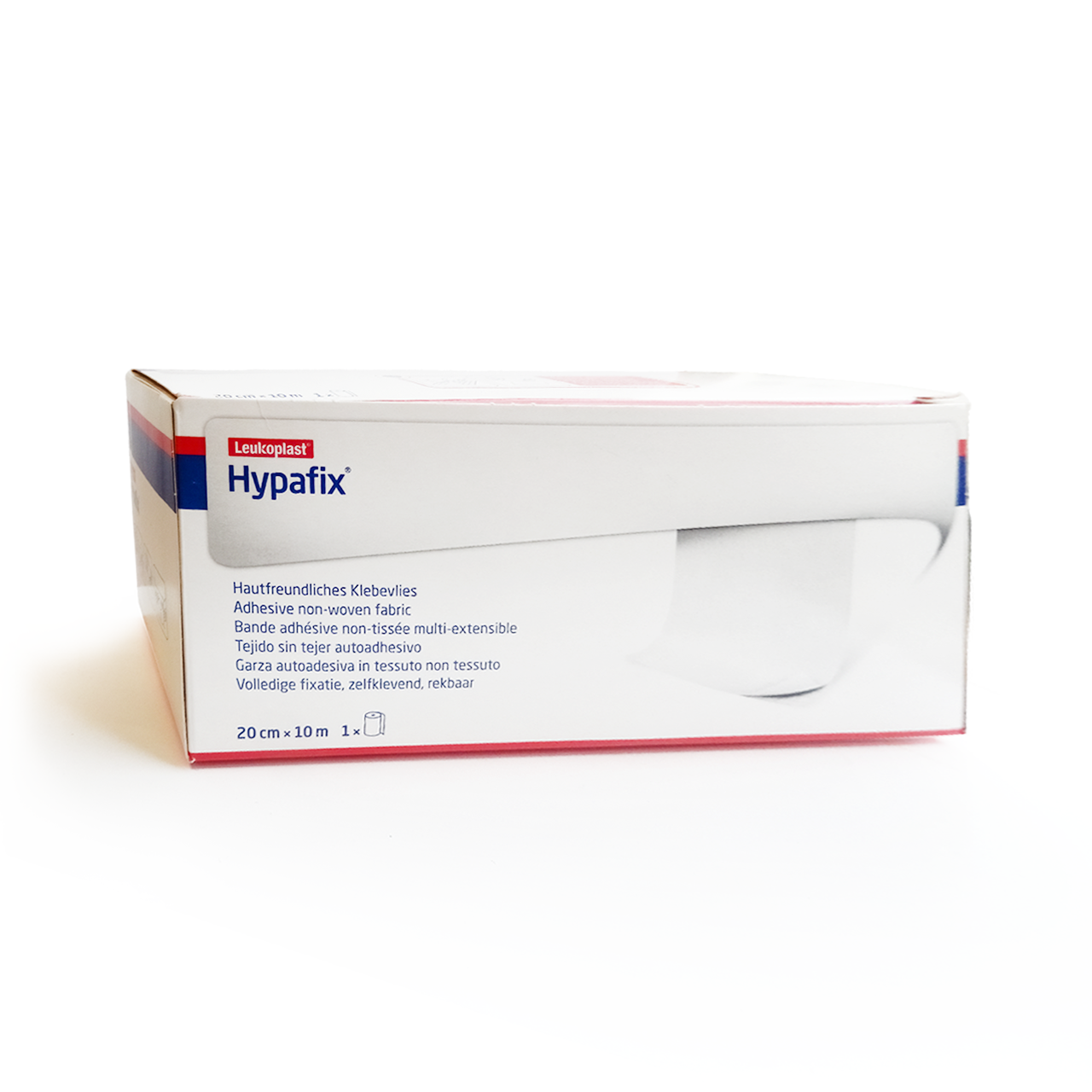 Hypafix Adhesive Non-Woven Fabric is a versatile and skin-friendly dressing solution, measuring 20 cm x 10 m. It is ideal for wide-area fixation and is often used instead of surgical tapes to secure and retain primary dressings on surgical or wound sites. Hypafix provides light compression without causing constriction, making it perfect for joints and highly contoured parts of the body, such as elbows and knees.