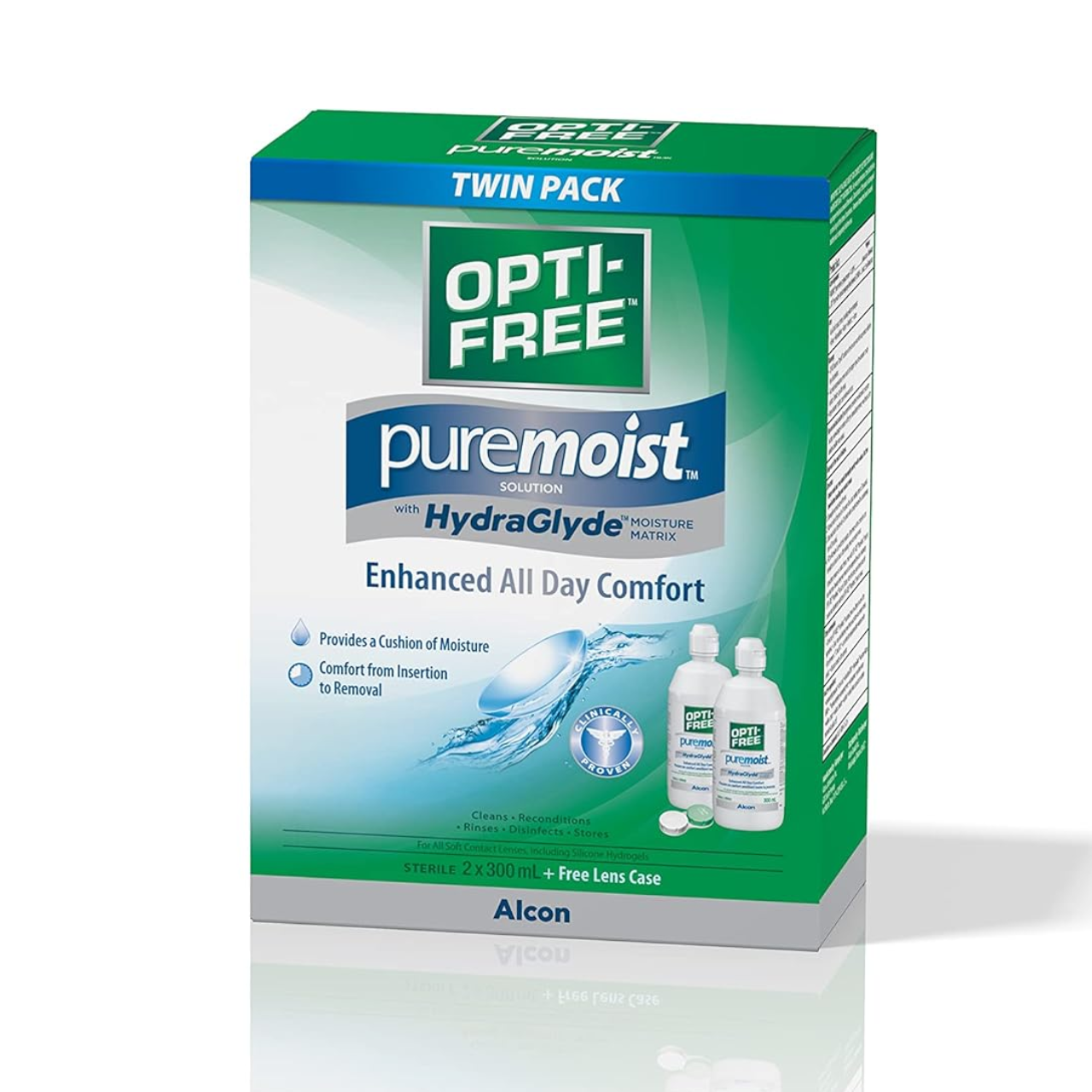 OPTI-FREE PureMoist® Contact Solution with HydraGlyde® delivers lasting hydration and all-day comfort for contact lens wearers. Its exclusive HydraGlyde® hydrating matrix creates a moisture cushion around lenses, keeping them fresh and comfortable throughout the day.