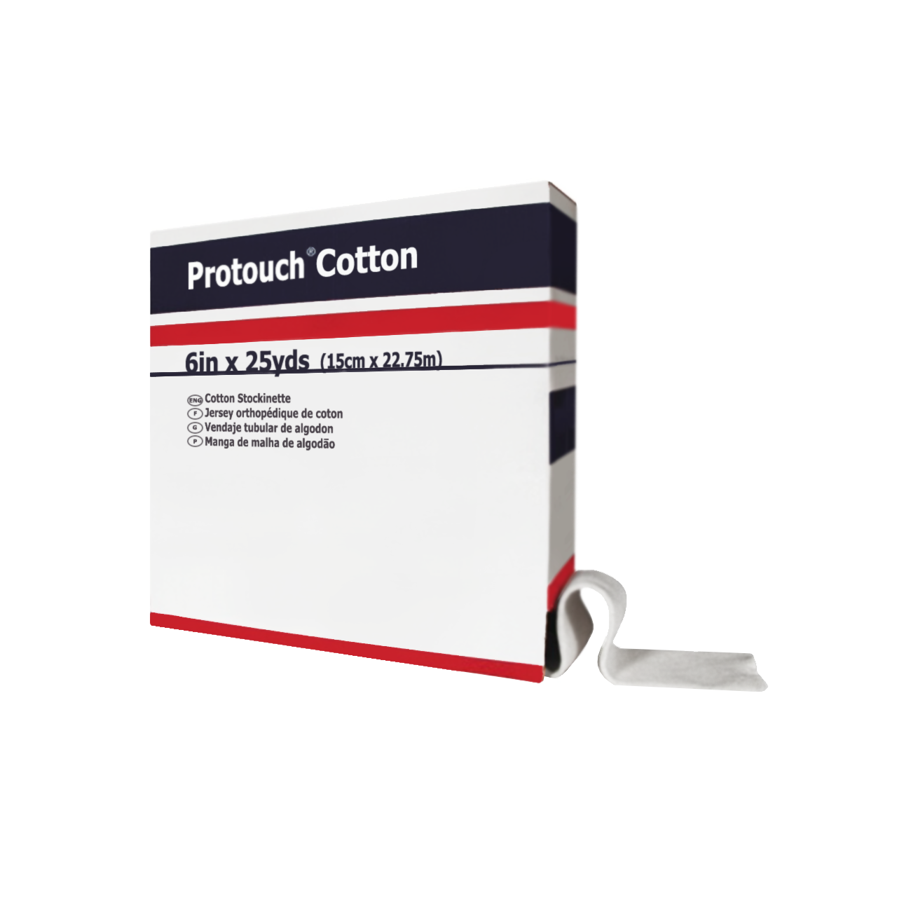 Protouch® Cotton Stockinette is designed for patient protection under plaster of Paris and synthetic casting materials and is available in a wide range of sizes. It is contained in an easy-to-use dispensing box for easy storage and handling.